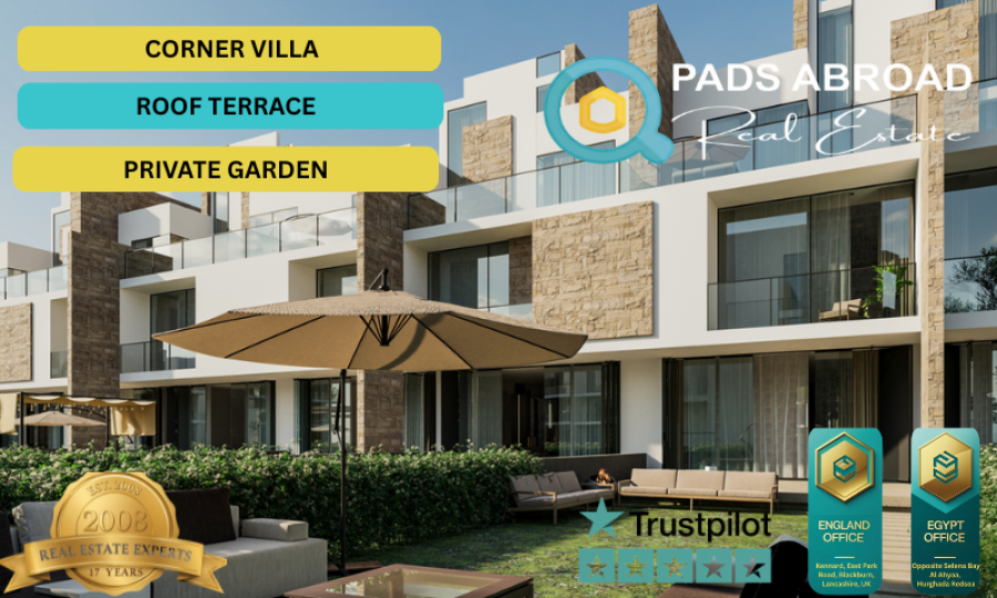 A spacious corner villa with a private garden and roof terrace in Long Beach Residence, ideal for family living, holidays, or investment in one of the most established in Sahl Hasheesh.