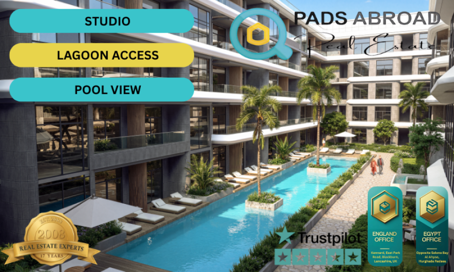 A stylish pool-view studio in a modern resort setting, ideal for holiday use, rental income, or an affordable investment close to El Gouna.