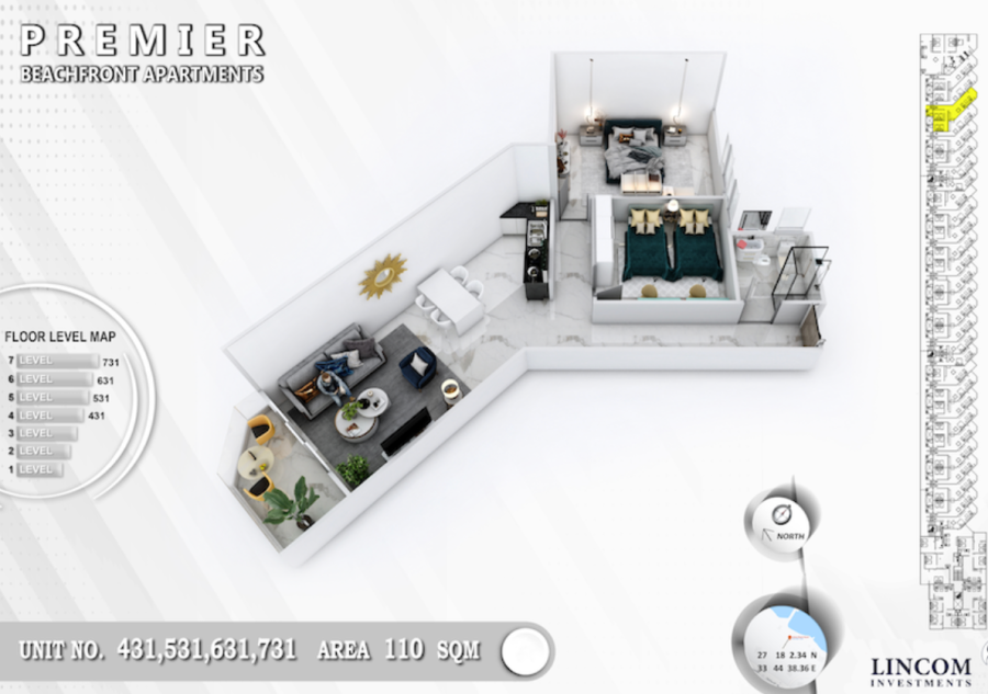 2-bedroom • 110 m² • Fourth Floor • Panoramic Sea View