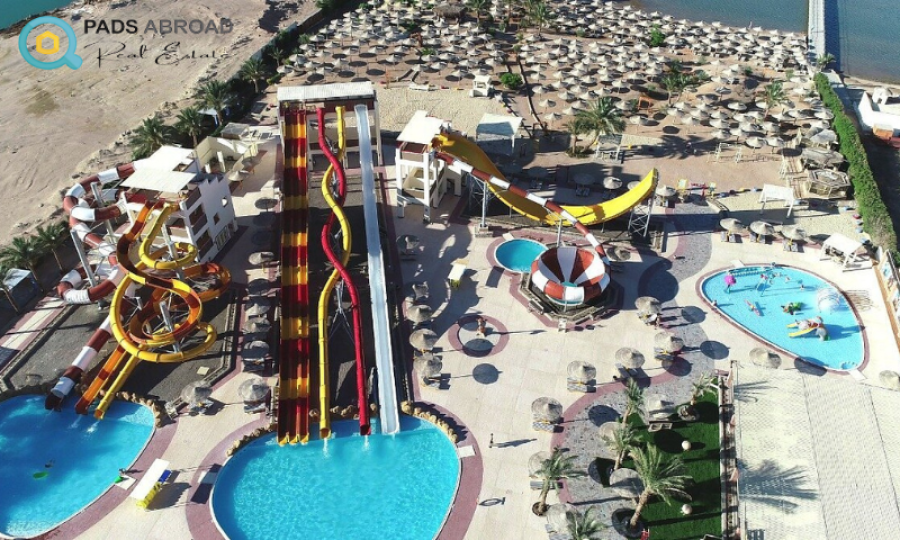 • Located in El Karma Resort, Hurghada • Beachfront resort with direct beach access • Aqua park and water slides • Multiple swimming pools • Landscaped gardens and communal areas • 24/7 security • Family-friendly environment • On-site cafés and restaurants • Walking distance to local amenities • Excellent holiday rental potential • Close to El Gouna and central Hurghada