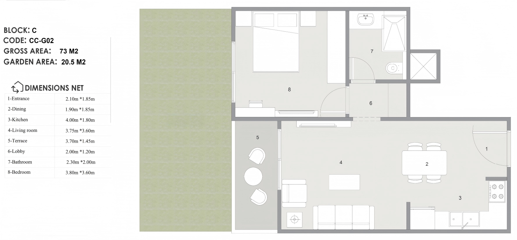 • Private Garden: 20 sqm